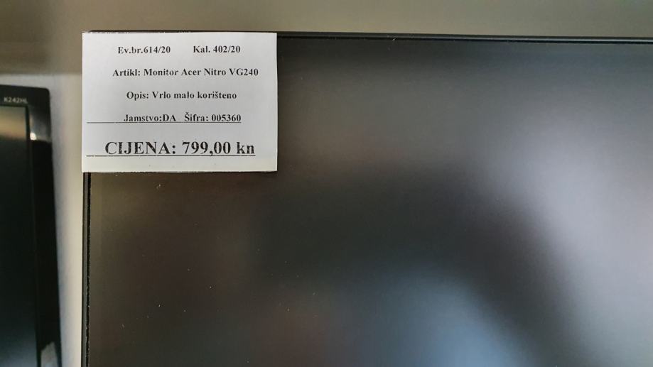 Acer Nitro VG240 u savrsenom stanju sa vazecom garancijom do 10.08.2021.