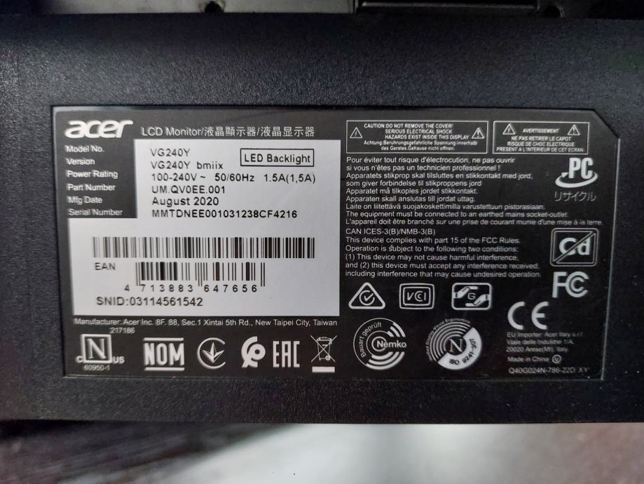 Acer VG240Y LED monitor 75Hz