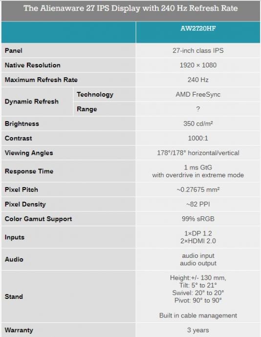 Alienware 27 Inch Gaming Monitor: AW2720HF