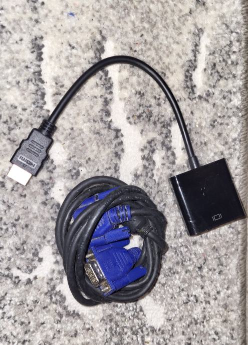 + VGA kabel, VGA to HDMI converter [može se spojiti i na HDMI utor na računalu, laptopu ili Playstationu]
