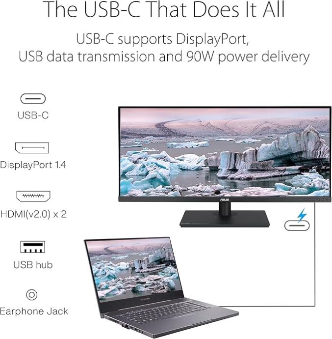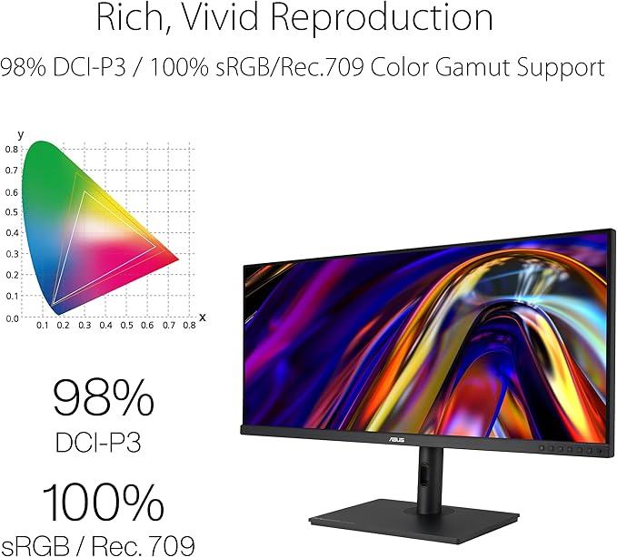 ASUS ProArt PA348CGV je ultraširoki monitor dizajniran za kreativne profesionalce, od uređivanja fotografija i videa do grafičkog dizajna. Dijagonala monitora je 86,36 cm (34") i pruža iznimne performanse boja sa širokim rasponom 98% DCI-P3 i omjerom kontrasta od 1.000:1. Vrijeme odziva od 2 ms omogućuje prikaz sadržaja bez zamagljivanja. Zaslon je tvornički kalibriran i potvrđen od strane Calman softvera kako bi se osigurala superiorna točnost boja, a 120Hz prilagodljiva stopa osvježavanja VRR s FreeSync Premium Pro osigurava glatku sliku prikazivanje . Bogatu povezivost omogućuje ugrađeni USB-C konektor, koji podržava prijenos podataka, napajanje 90 W i DisplayPort te predstavlja praktično rješenje za povezivanje preko jednog kabela. PA348CGV monitor je idealan izbor i omogućuje brzo i jednostavno postizanje točno izgleda kakav želite.