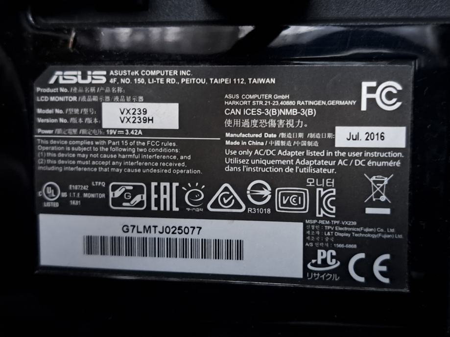Godina proizvodnje 2016. (vidi se na naljepnici na fotografiji), a monitor je kupljen 2017.