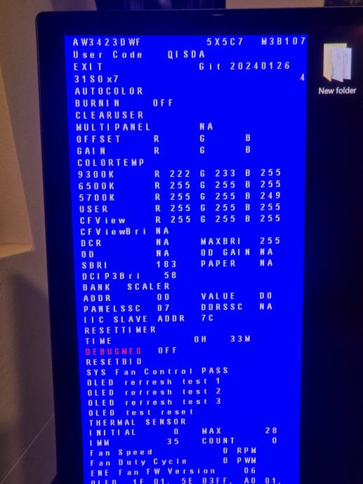 Monitor je bio servisiran zbog mrtvog piksela i poslali su mi potpuno novi (pogledaj slike za vrijeme korištenja, 0 h 33 min, toliko mi je trebalo da sve testiram).