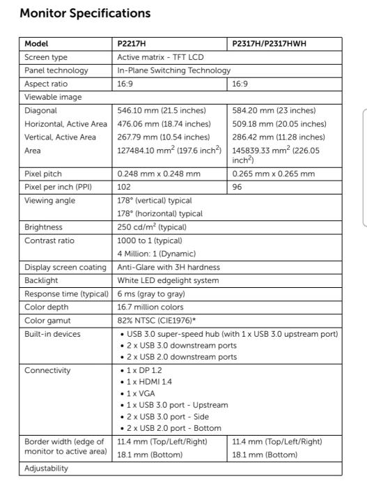 - DisplayPort, HDMI, USB, VGA (D-sub)