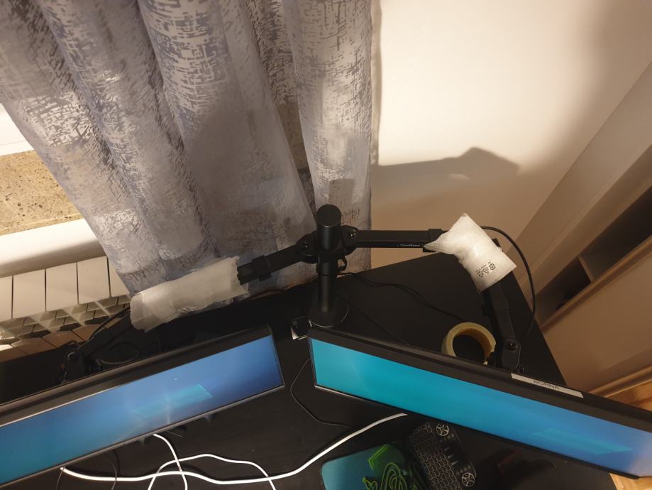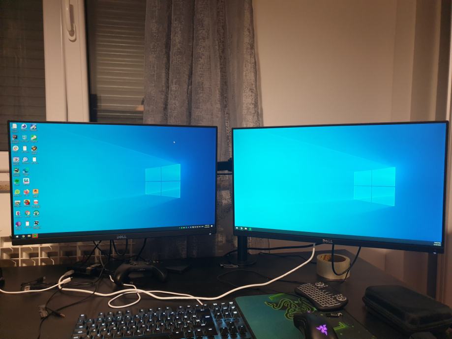 Uz njih dolazi i Von Haus stolni nosač za dva monitora sa vesa nosačima na monitorima te originalni stalci koje moram dofurat od kuće tako da će stalci bit dostupni od 18.10. na dalje. Dajem također i potrebne naponske kablove i display port kablove.