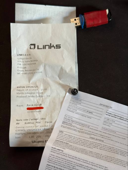 Kupljen u Linksu 14.11.2024, kao nov, malo korišten, bez ogrebotina ili mrtvih piksela. Dolazi s original kutijom, računom i svim kablovima. Pod garancijom je 24 mjeseca (jos otprilike godinu i pol).