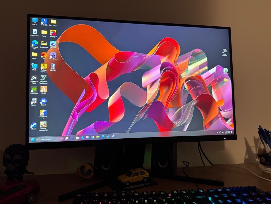 Prodajem 27-inčni LED monitor s dijagonalom ekrana od 27 inča. Rezolucija je Full HD 1920 x 1080 piksela, a format ekrana je 16:9. Monitor ima HDMI i USB priključke, što omogućava jednostavno povezivanje s računalom i ostalim uređajima. Dobar je za svakodnevni rad, gledanje filmova i lagano igranje igrica. Monitor dolazi s priloženim postoljem.
