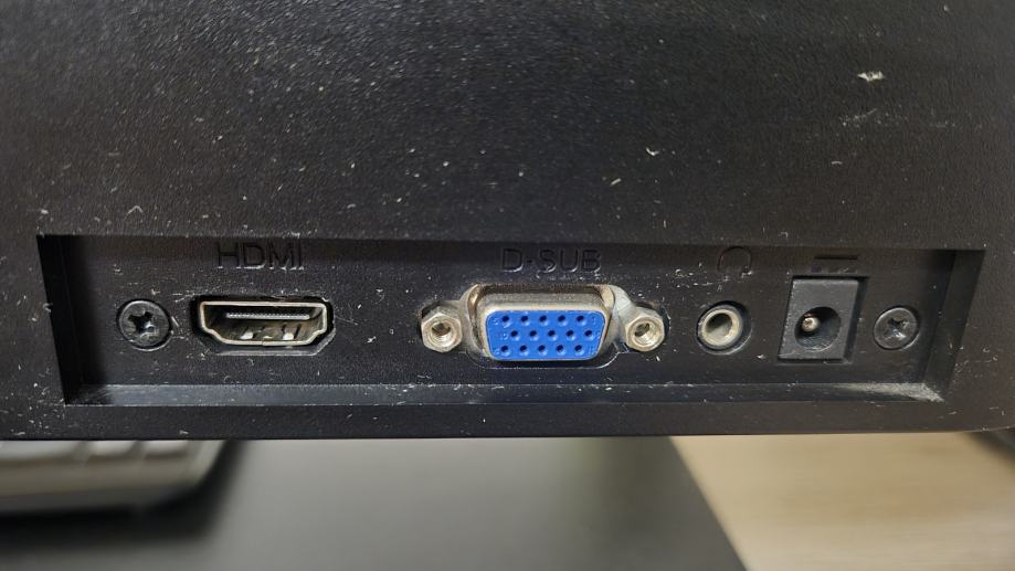 Na stražnjoj strani nalaze se HDMI i VGA priključci, kao i audio priključak. Dolazi s adapterom za napajanje.