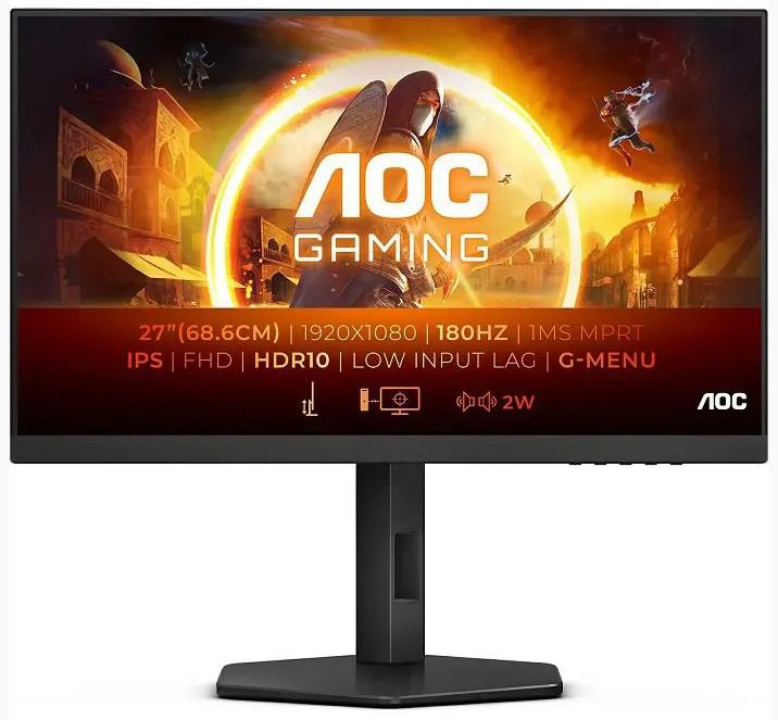 Monitor AOC 27G4X, 27", IPS, FHD 1920x1080px, 180Hz, 1ms, HDR10, G-Sync, Adaptive-Sync, DP, 2xHDMI, zvučnici, pivot