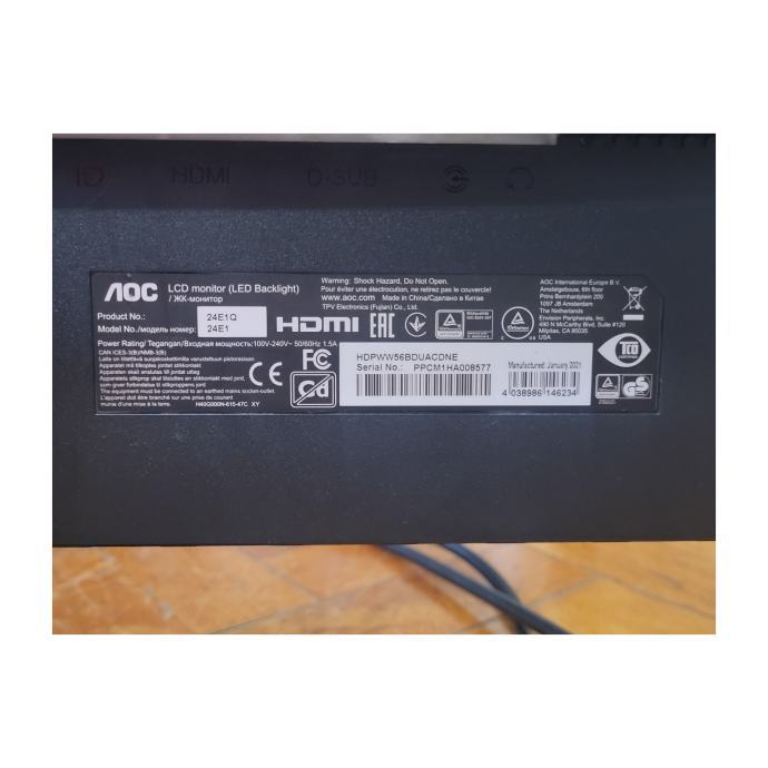 Prodajem LED monitor AOC 24E1Q, FullHD, 24", IPS, 16:9, 1920x1080, 60Hz, 5 ms, zvučnici, HDMI, Display Port, 3-side frameless.