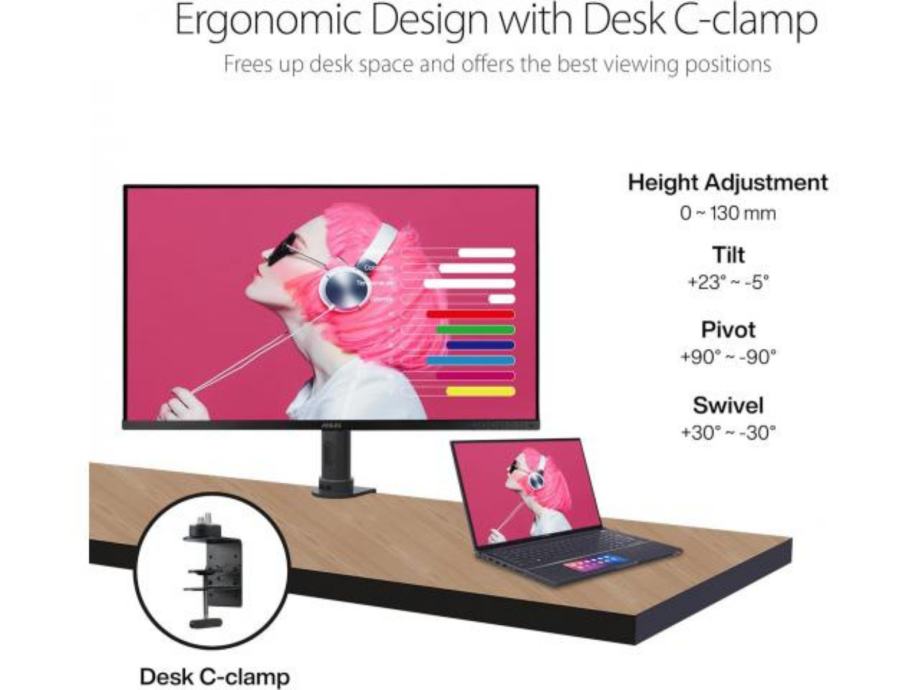 Profesionalni monitor ProArt Display PA329CV ima napredne načine rada Picture-in-Picture i Picture-by-Picture koji vam omogućuju prikaz i usporedbu slika više izvora ili uređaja na jednom monitoru. Možete mijenjati zvukove povezanih uređaja.