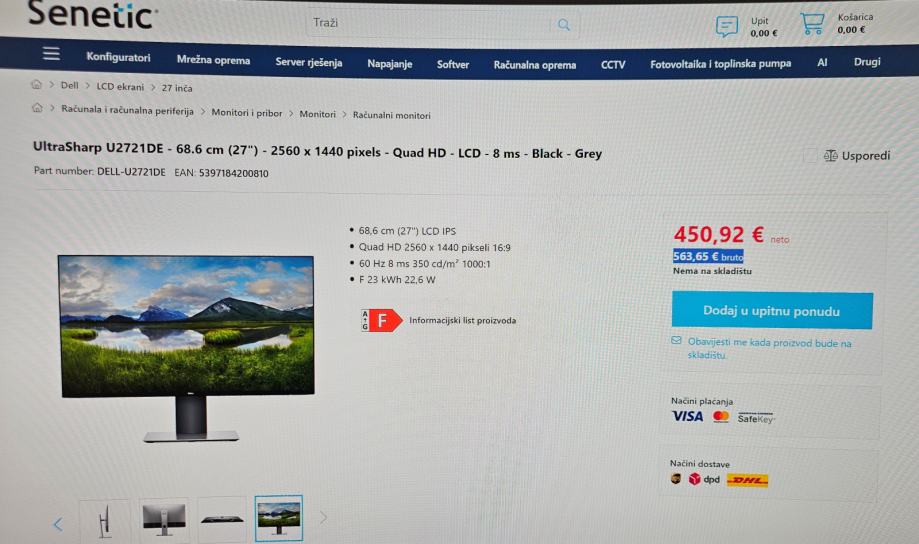 Zajedno s ekranom i napajanjem, dajem i jedan novi HDMI kabel (zapakirani, nekorišteni).
