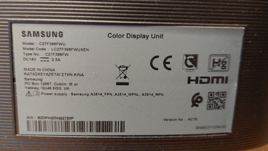 Zakrivljeni monitor Samsung C27F398FWU