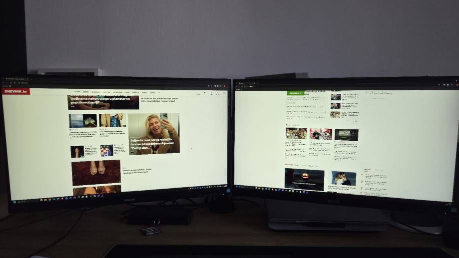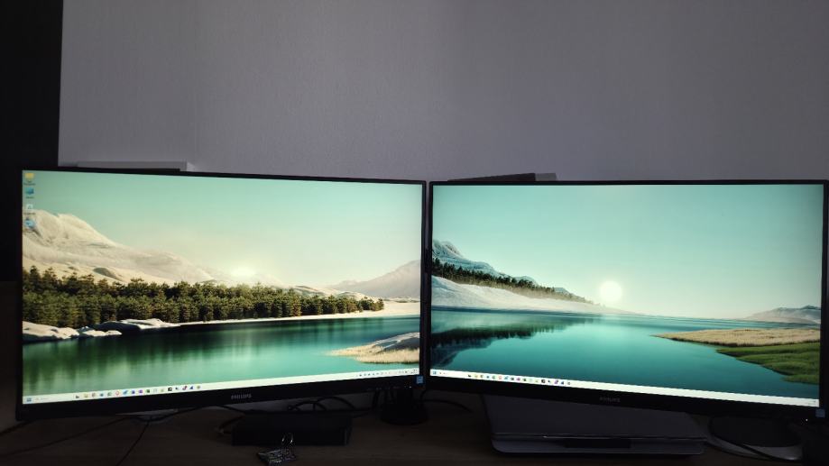 Monitori dolaze sa svim potrebnim kablovima, originalnim postoljem i VESA nosačima koji se učvršćuju na stol. Ispravni i očuvani.