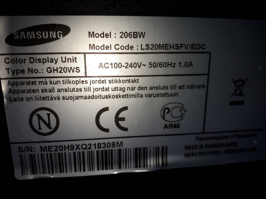 Samsung 206 bw gaming monitor odaziv 2ms jako malo upotrebljavan bez ostecenja za ostale informacije i karakteristike