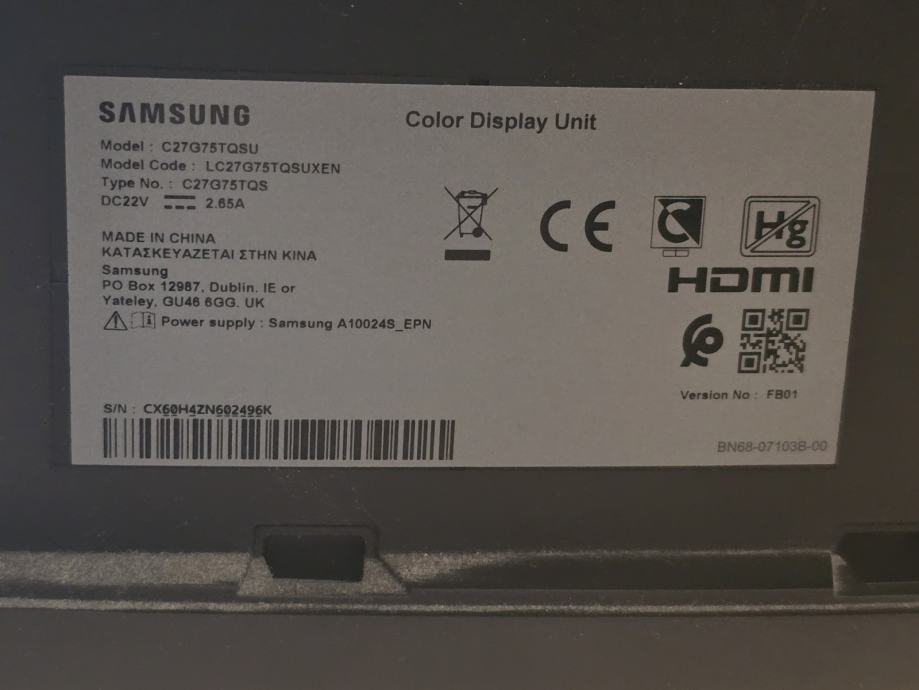 Prodajem korišteni monitor marke Samsung, model Odyssey G7, sljedećih specifikacija: