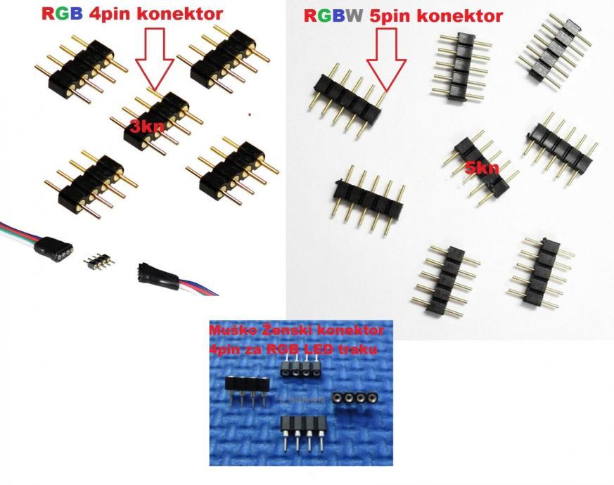 4 pin ILI 5pin muški priključak za RGB ILI RGBW 3528 5050smd LED trake