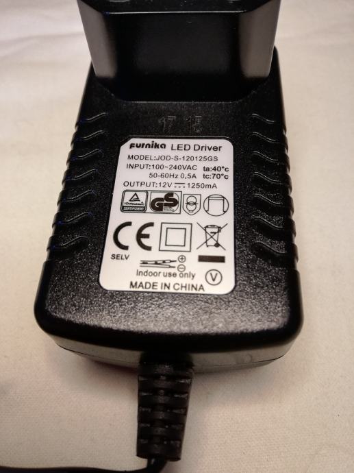 Adapter switch tipa, maksimalno struja 1,25 Ampera.