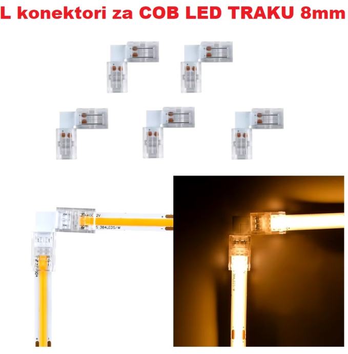 8mm 2pin COB LED traka konektor traka svjetla L oblika LED kutni konektori za SMD COB 2835 traka svjetla fiksne stezaljke