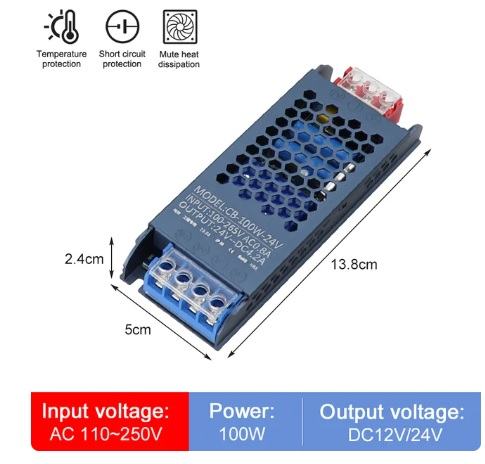 DC12/24V - 100W (8,3A) - Dimenzije (Dužina 14cm, širina 5cm, debljina 2cm) - 15€