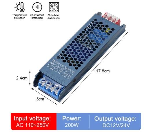 DC12/24V - 200W (17A) - Dimenzije (Dužina 18cm, širina 5cm, debljina 2cm) - 20€