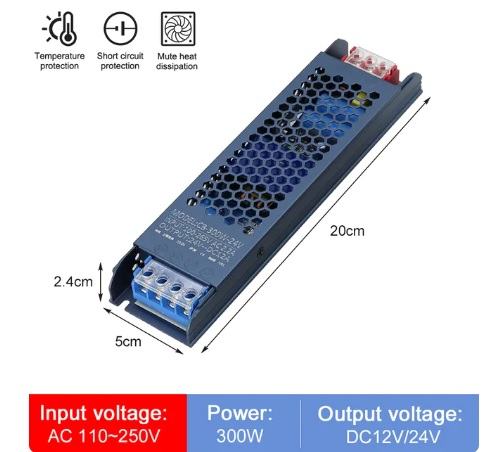 DC12/24V - 300W (25A) - Dimenzije (Dužina 20cm, širina 5cm, debljina 2cm) - 23€