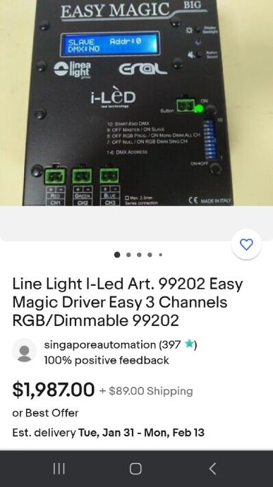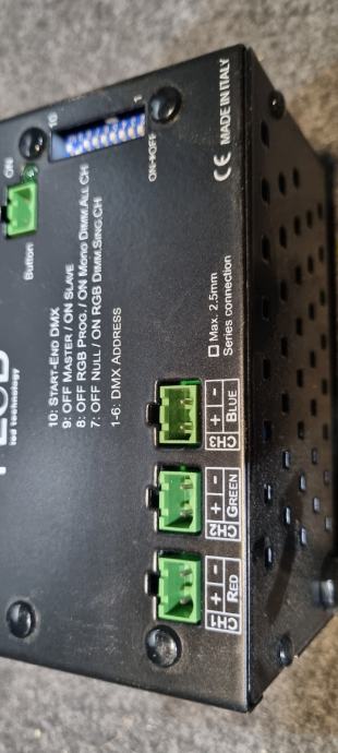 Dimer za LED DMX control. Vrlo rijedak na širokom tržištu zbog svoje cijene i kvalitete. Cijena u EU je od 1000 do 1500€.na ebay. Movuće razne zamjene.