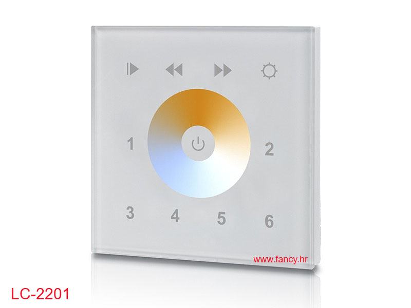 Zidni uređaj za kontrolu LED rasvjete s mogućnošću promjene boje svjetla od 3000-6500K.