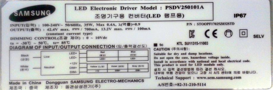 Input: 100-240Vac, 50/60Hz, 35W, max 0.4A