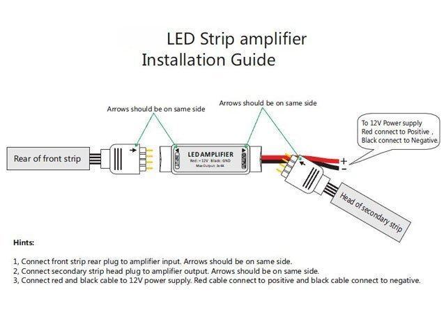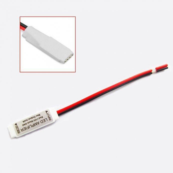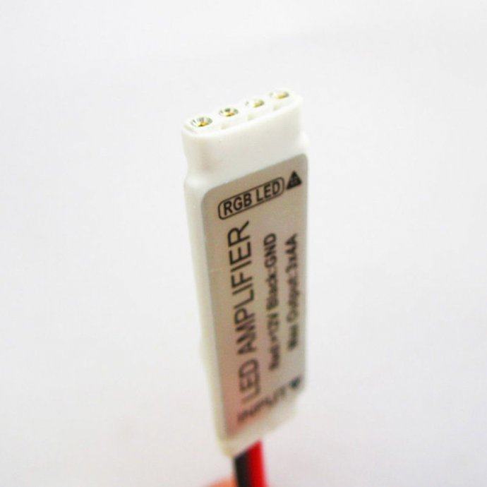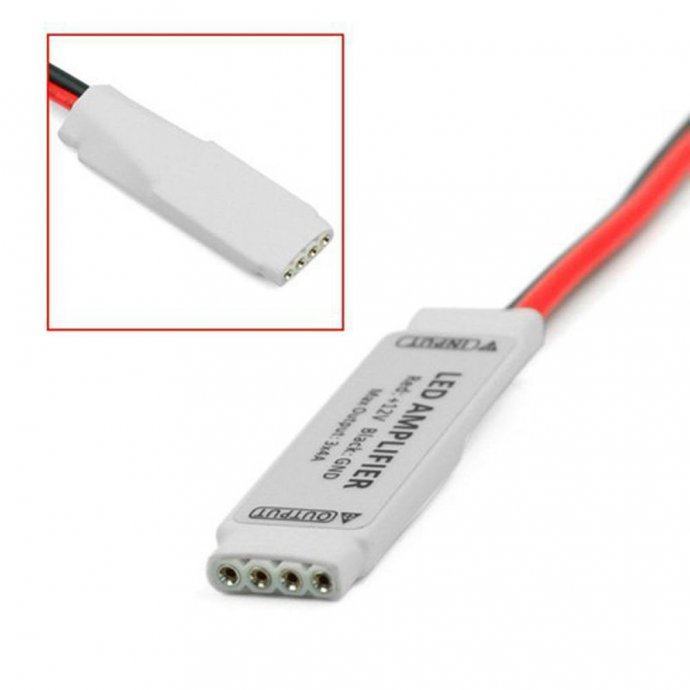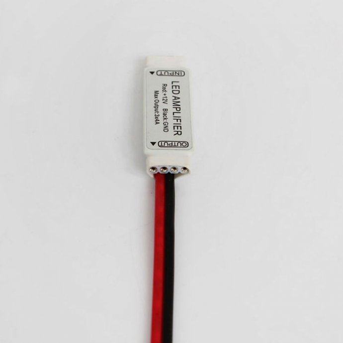 To je potpuno novi RGB LED traka pojačalo. To čini dugo LED provedbu strip mnogo više povoljno. Tanak dizajn čine ga lako instalirati zajedno s trakom ili kabelima, čak u vrlo uskom prostoru. Njegova izlazna snaga je do 144W i izgrađen s pogrešnom zaštite ožičenja. To se koristi za povećanje sposobnosti opterećenja i proširiti signal univerzalnih RGB kontrolera.