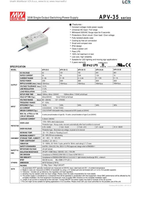 Model: APV-35-24 *MEAN WELL