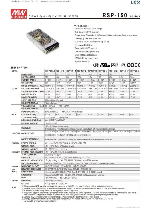 Model: RSP-150-12 *MEAN WELL