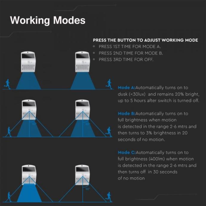 3W LED solarna zidna lampa sa senzorom 4000K+3000K Bijelo+crno kućište