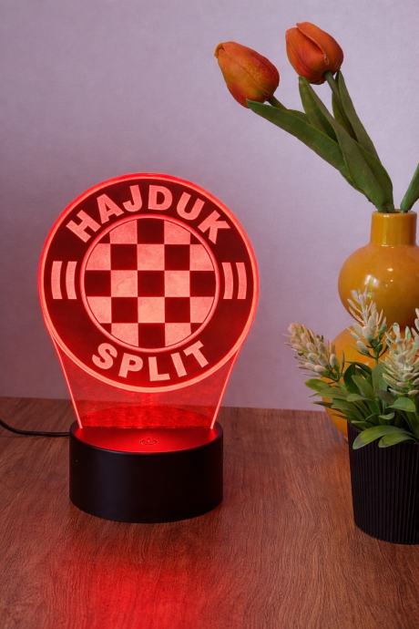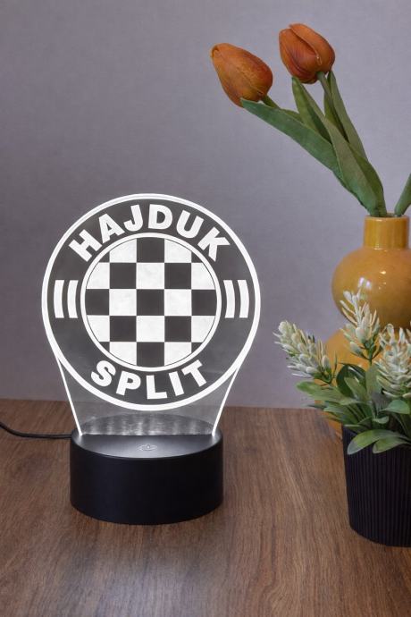 Prodajem novu LED noćnu lampu s motivom grba Hajduka iz Splita. Lampa ima akrilnu ploču s karakterističnim šahovim uzorkom i natpisom Hajduk Split, postavljena na crnu LED osnovicu. Može svijetliti u različitim bojama. Odličan poklon za sve navijače Hajduka ili ukras za dječju sobu, spavaću sobu ili dnevni boravak.