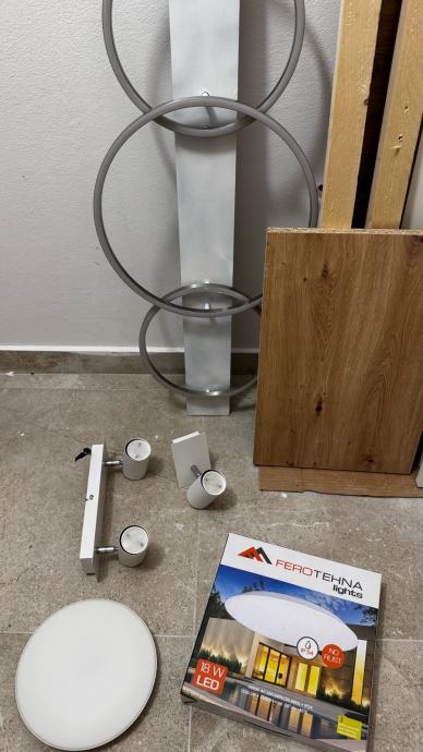 Prodajem komplet od 5 rasvjetnih tijela. Velika LED plafonjera sa tri prstena, dvije plafonjere od kojih jedna ima IP zaštitu 54, te dva usmjeravajuća reflektora (jedan zaseban i jedan u paru).