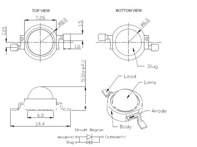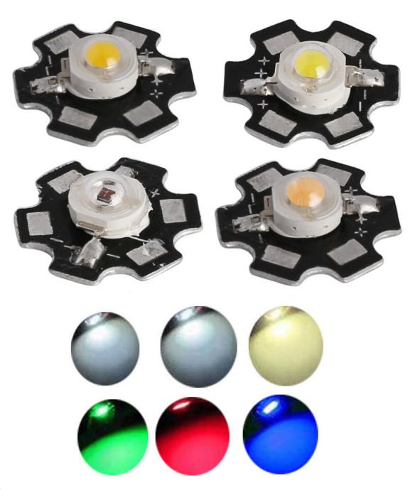 LED Chipovi (crveni, plavi, zeleni, toplo bijeli, bijeli, hladno bijeli, pink i RGB) na PVB pločici 3W / 700mA, 2-3,6V. Leće za LED Chipove 1, 3 i 5W.