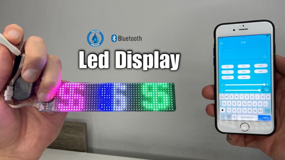 Led programirani display, prenosan i lagan radi pomocu punjive baterije, programira se preko aplikacije, ispis rijeci, crtanje po displeju, animacije....
