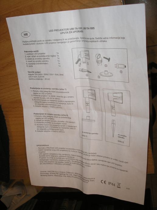 Led projektor CS-T001A (U90-TA-1001 / U90-TA-1005) (2 komada) - novi, nekorišteni, u kutijama, nazivna snaga 6 VA, nazivni napon 12 V, u svakom projektoru ima 4 led žarulje od 1 W, sa uputama za uporabu, veličina projekcije oko 20 m2