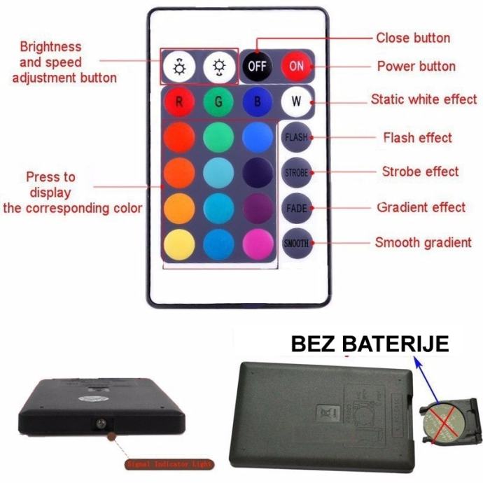 Prodajem novu LED traku duljine 5 m, daljinski sa 24 tipke, mijenja boje i modove osvjetljenja.