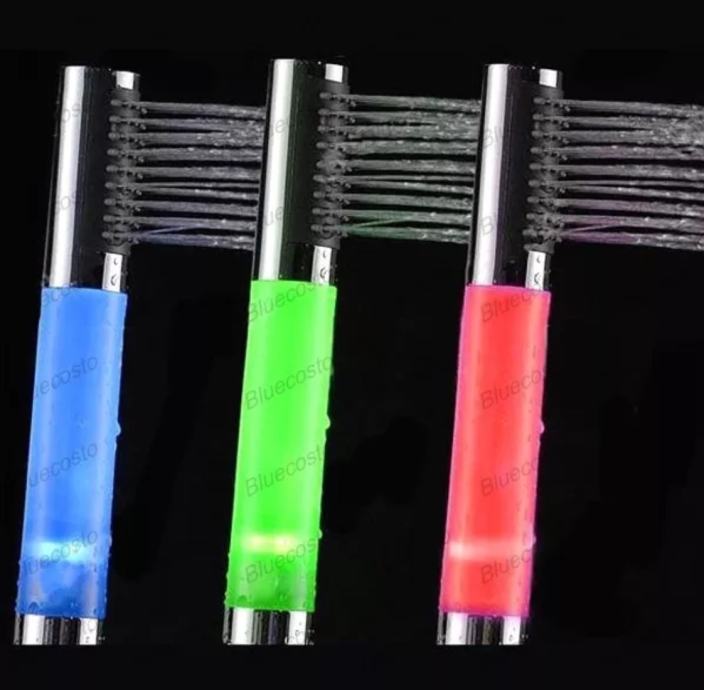 Baterije se ne koriste jer brzina mlaza vode pokreče mini turbinu koja proizvodi doboljno struje za led žarulje u nastavku