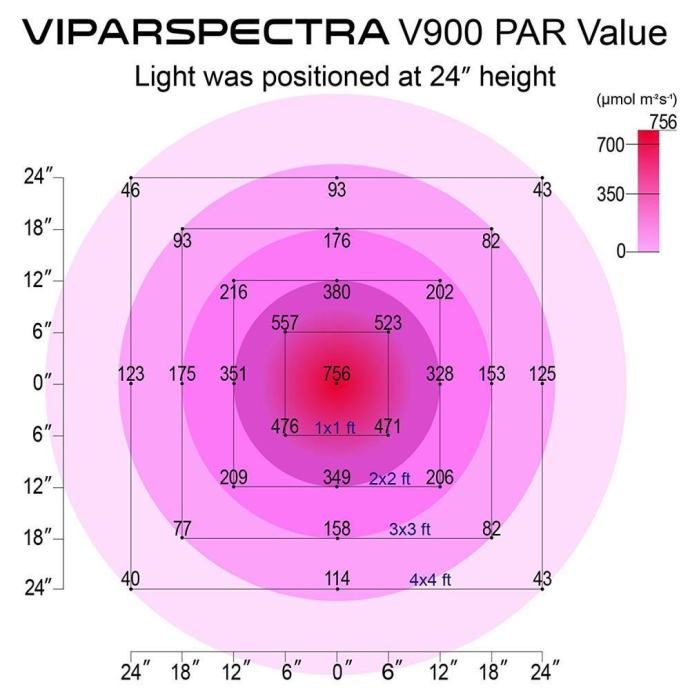 Svjetiljka VIPARSPECTRA reflektora V900 LED Grow Light je znanstveno projektirana kako bi održala ravnotežu izlaznih i pokrivenih funkcija PAR / Lumen.