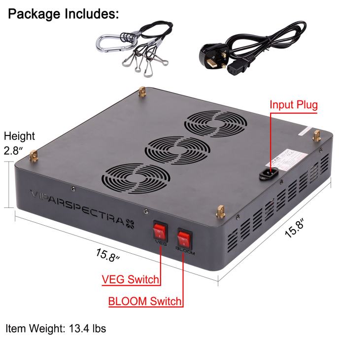 Dizajn:- VIPARSPECTRA Spectrum razvili su uzgajivači unutarnjeg uzgoja bilja, tijekom dugogodišnjeg pažljivog eksperimentiranja i testiranja. S ovom svjetlošću vidjet ćete povećanje kvalitete uzgojem većih cvjetova koji su gusti. Serija VIPARSPECTRA reflektora znanstveno je dizajnirana kako bi održala ravnotežu visokim PAR / Lumenom i prikladnim Pokrivenostom. Ovaj dizajn neće biti previše koncentriran usred uzgojnog područja što rezultira usporenim rastom biljaka i opadanjem sunca.- S revolucionarnim hlađenjem aluminijskih hlađenja i visokim brzinama, prilično hladnim ventilatorima, pokrećite 70% hladniju od (HID) svjetala.