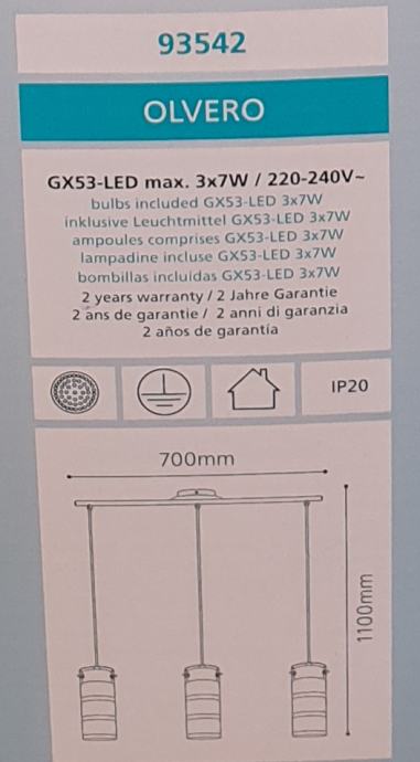 Eglo 93542 - LED Viseća svjetiljka OLVERO 3xGX53/7W/230V