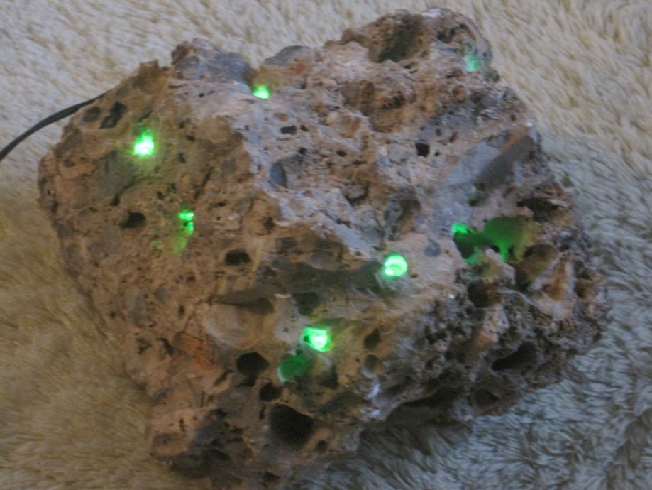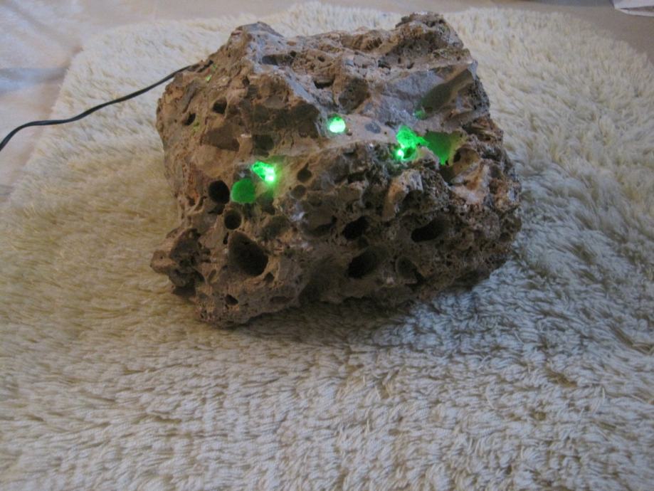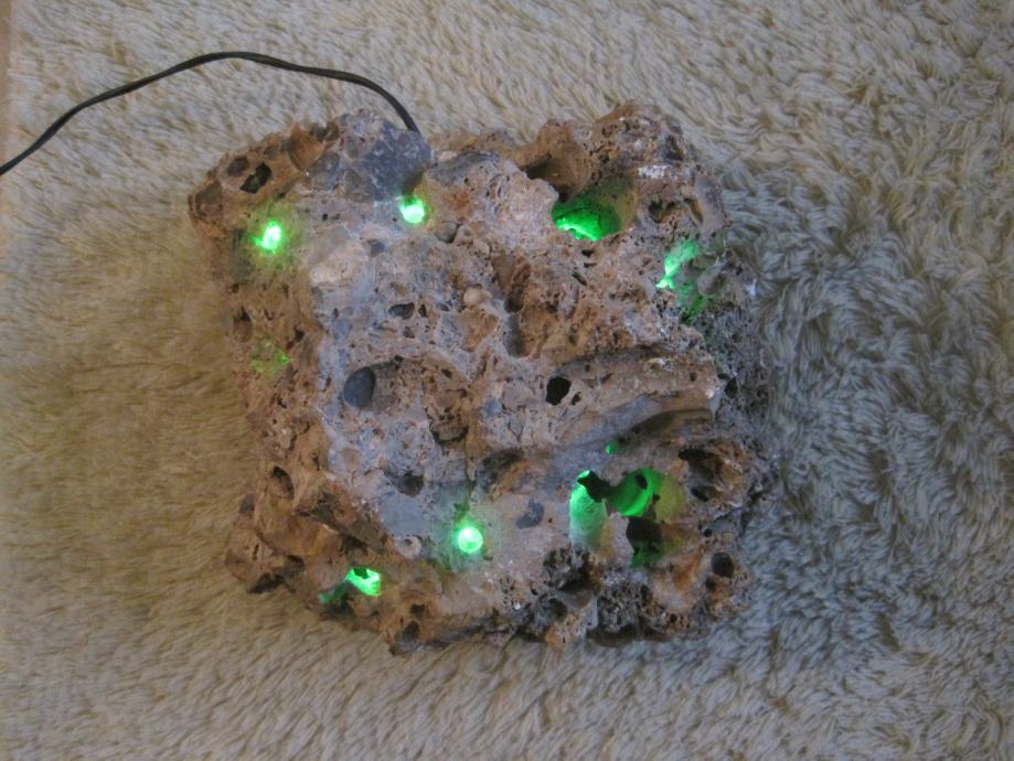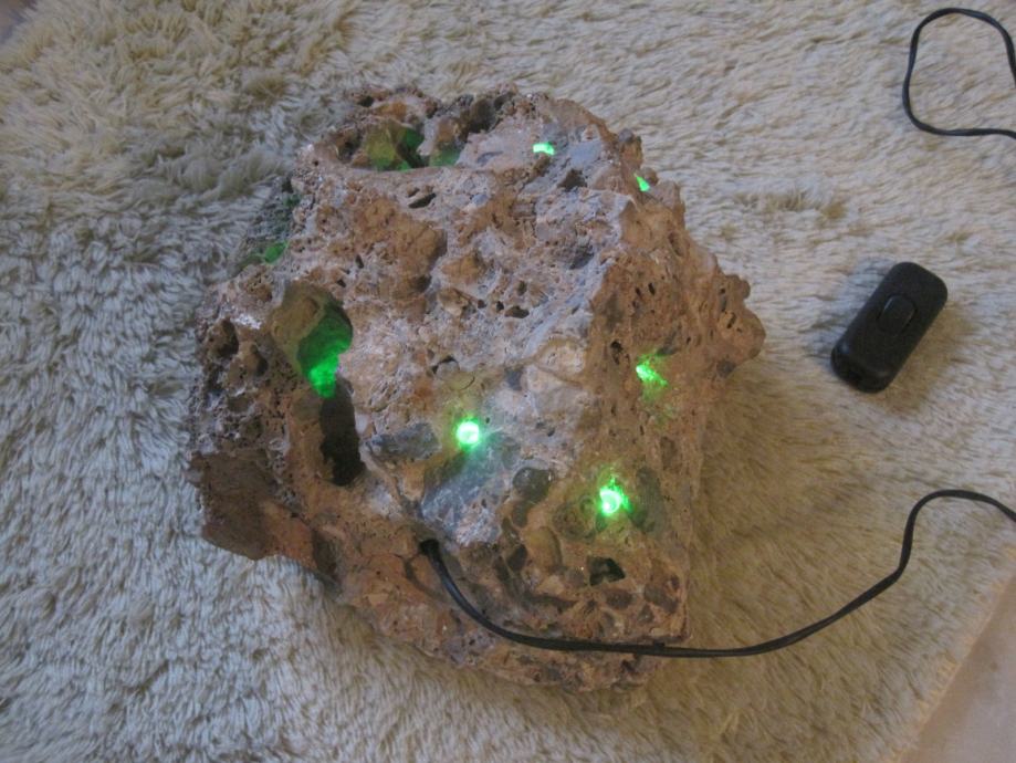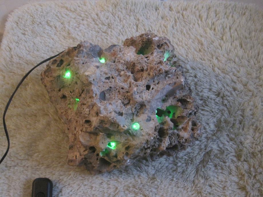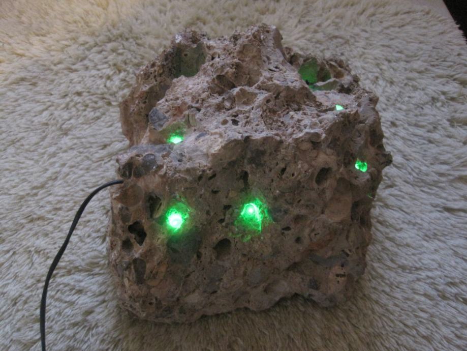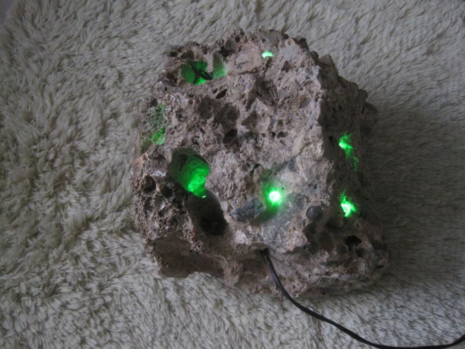 Svjetiljka je napravljena od morskog kamena . U nju su ugradjene LED diode sa pripadajućom instalacijom . Napajanje je preko adaptera 220/5 v . Veoma atraktivno izgleda ( naročito noću ) . Ovakvo nešto je samo po sebi unikat , nigdje slično nećete naći . Pogodno je za poklone , za romantičere kao stvoreno . Može raditi neprekidno , ali po želi mogu dograditi prekidač koji ide na kabal . Potrošnja struje je zanemariva , brojilo jednostavno ne očitava potrošnju .Nekoj dragoj osobi ako ovo poklonite sigurno Vas neće zaboraviti ! Na podnožje lampe je zaljepljena debela tekstilna obloga kako ne bi oštetila mijesto gdje je postavljena !!