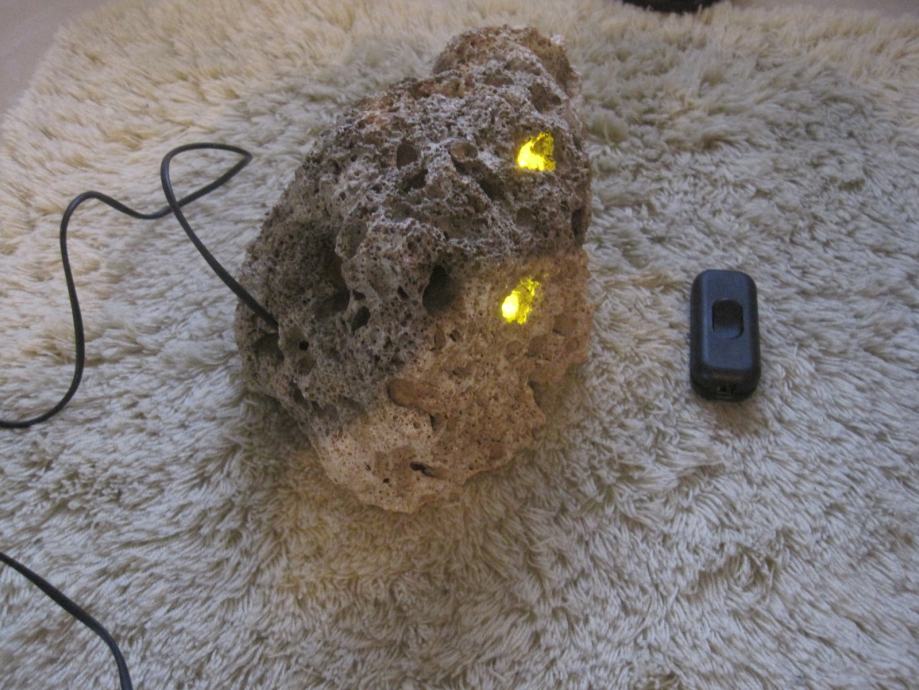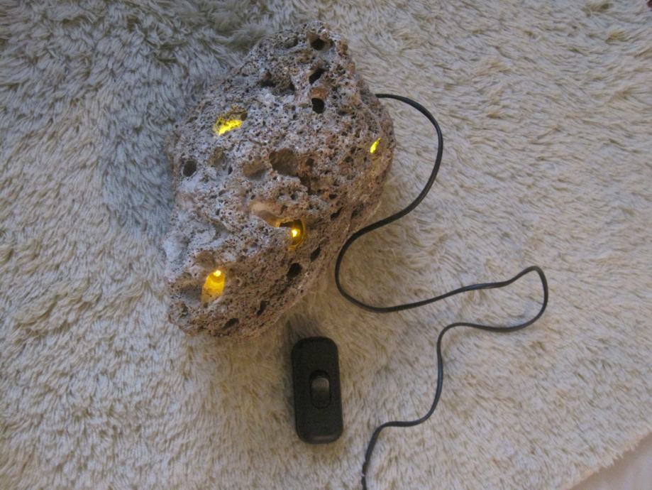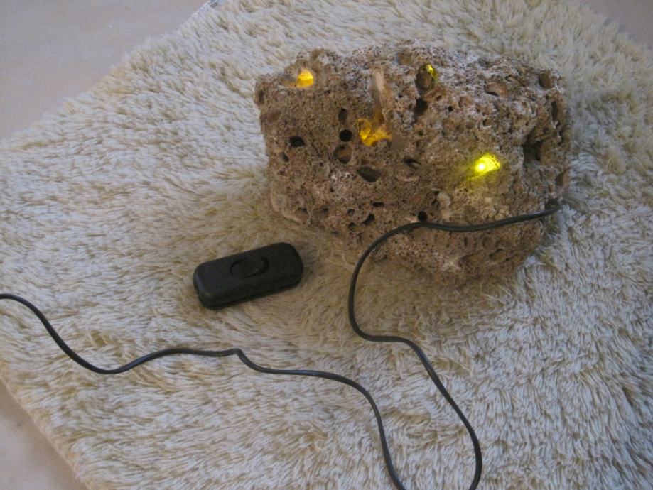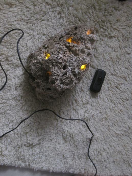 Svjetiljka je napravljena od morskog kamena . U nju su ugradjene LED diode sa pripadajućom instalacijom . Napajanje je preko adaptera 220/5 v . Veoma atraktivno izgleda ( naročito noću ) . Pogodna je za poklone , za romantičare kao stvorena . Može raditi neprekidno ali po želji mogu dograditi prekidač koji ide na kabal .Potrošnja struje je zanemariva ., brojilo jednostavno ne očitava potrošnju .. Na podnožje lampe je zaljepljena debela tekstilna obloga kako nebi oštećivala površinu gdje stoji !! Ako ovu lampu poklonite nekoj dragoj osobi , poklonićete nešto što traje i što ostaje u sjećanju !!