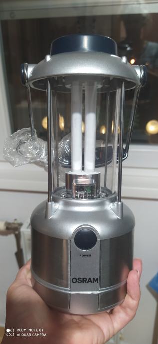 Svjetiljka je izrađena od plastike i čelika, visine 24,5 cm, promjera 10,5 cm