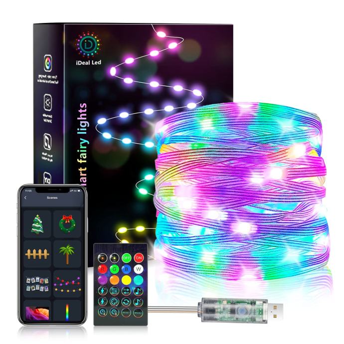 Putem idealne LED APLIKACIJE postoji mnogo boja svjetla i više načina osvjetljenja za odabir. Dostupna je razina svjetline, a način odbrojavanja može zadovoljiti vaše različite potrebe korištenja. Svaka LED dioda na jedinstvenom nizu božićnih lampica potpuno je programabilna pametna žarulja. Možete odabrati unaprijed izrađene dizajne svjetiljki i animacije iz aplikacije ili čak programirati vlastite dizajne kako bi odgovarali bojama vašeg omiljenog sportskog tima, jedinstvene animacije i više..
