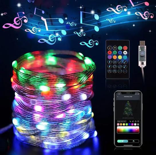 Bajkovita svjetleća žica dizajnirana je s USB napajanjem koje se može spojiti na Bluetooth tehnologiju aplikacije za pametni telefon. Pogodno za upravljanje svjetlom s udaljenosti, koje također može promijeniti boju svjetla u skladu s glazbom.