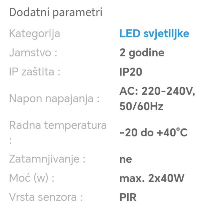 2x40 wati žarulja (žarulje nisu u cijeni,