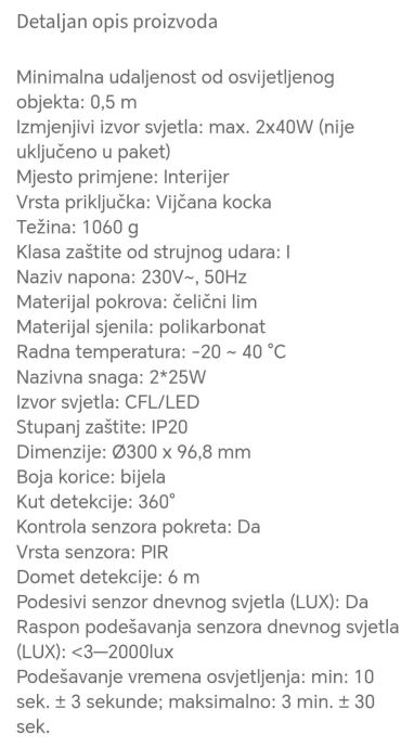 PLAFONJERA SA PIR SENZOROM, 2.X40W, E 27, SPLIT, S MONTAŽOM ZA 75.€ !